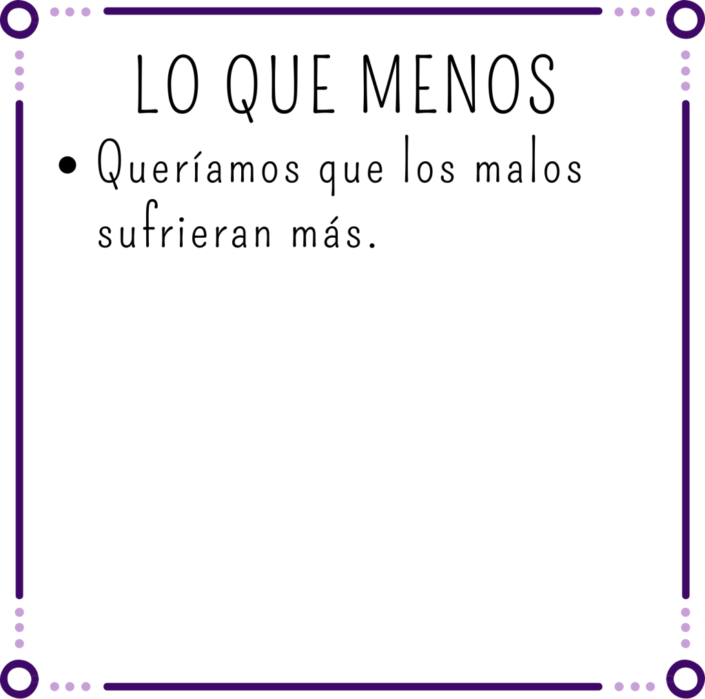 Este libro y sus plot twist no son aptos para gente con dolencias cardiacas, avisadas estáis. Y aunque algunos estaban más claros que las aguas del caribe, nos ha encantado leer cómo suceden, porque muchas veces no es lo que ocurre si no ver cómo se desarrolla todo.
