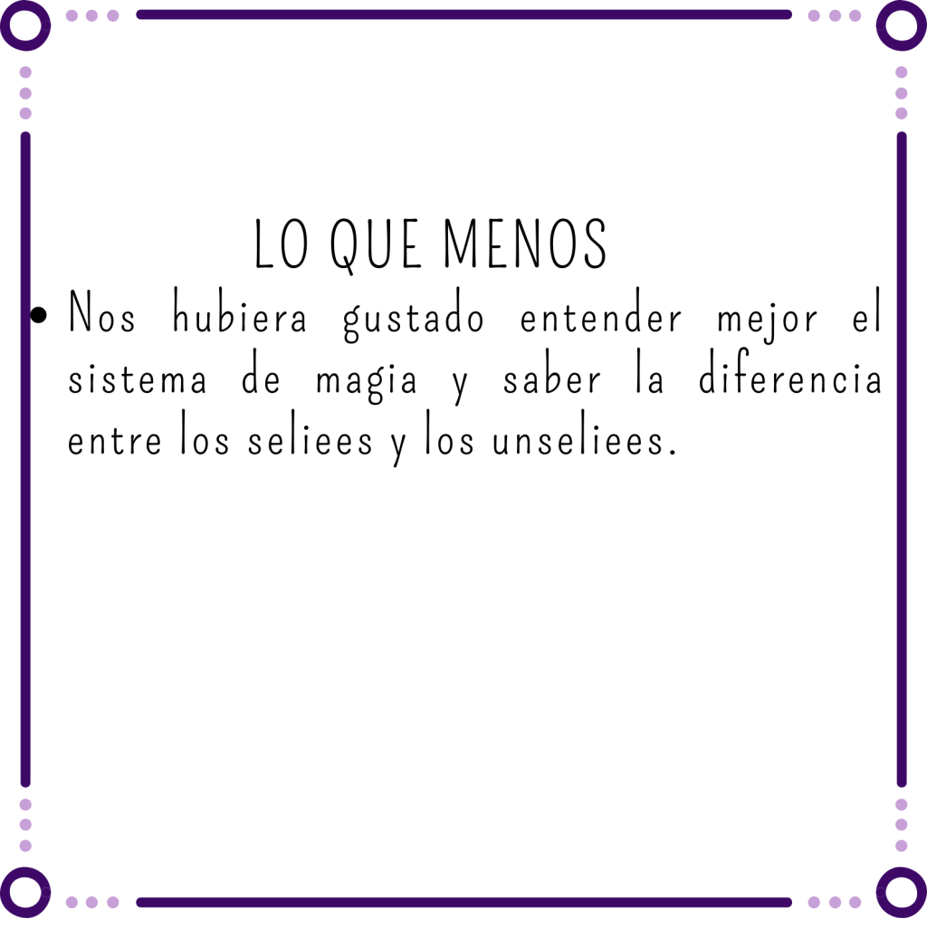 La ambientación nos traslada a un mundo mágico donde hay dos cortes que están en guerra, los seliees y los unseliees.