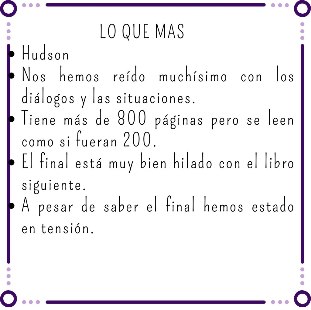 Además, la necesidad de respuestas y los pequeños momentos de acción ha hecho que nos leamos en 6 días más de 800 páginas.