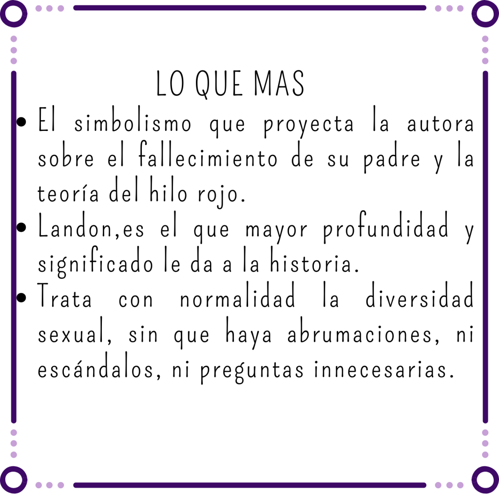 Todo el desenlace de la novela carece de desarrollo, contexto y estructura. Los romances son inexplicables y aparecen los típicos dramas de adolescentes que ya cansan. Sin embargo, en comparación con el resto, el final sí que me gustó gracias a Landon.
