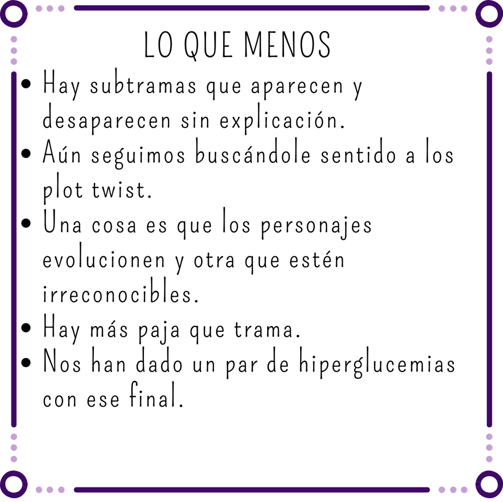 Sabíamos a lo que veníamos, éramos conscientes de que es una saga súper juvenil, que a la escritora le gusta meter más relleno que a un cojín y que hay protagonistas que se merecen sensatez en vena, pero aun así… Sabiendo lo que sabemos ahora, seguramente no lo habríamos leído para quedarnos con el buen sabor de boca que nos habían dejado los anteriores.
