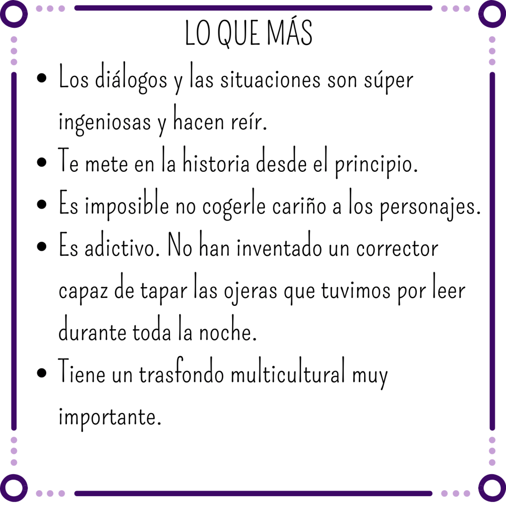 En general nos ha parecido un libro súper entretenido, adictivo y divertido desde el principio hasta el final. Sin demasiadas pretensiones, muy bien ejecutado y sin complejidades. La misión es que te lo pases bien al leerlo y eso lo cumple con creces.