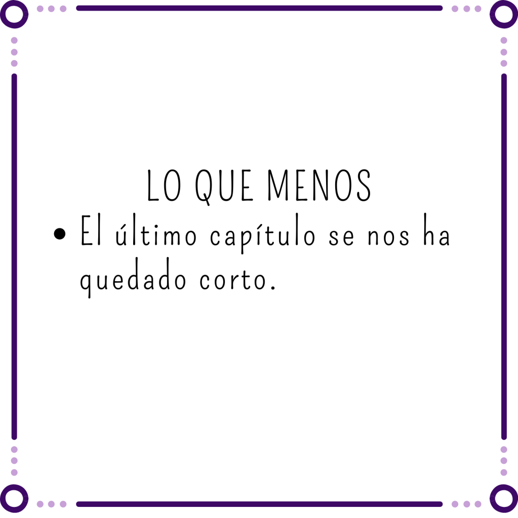 Y aunque hay cosas que no quedan del todo claras, tenemos en cuenta que es el inicio de la saga, por lo que entendemos que hay detalles que se explicarán más adelante.