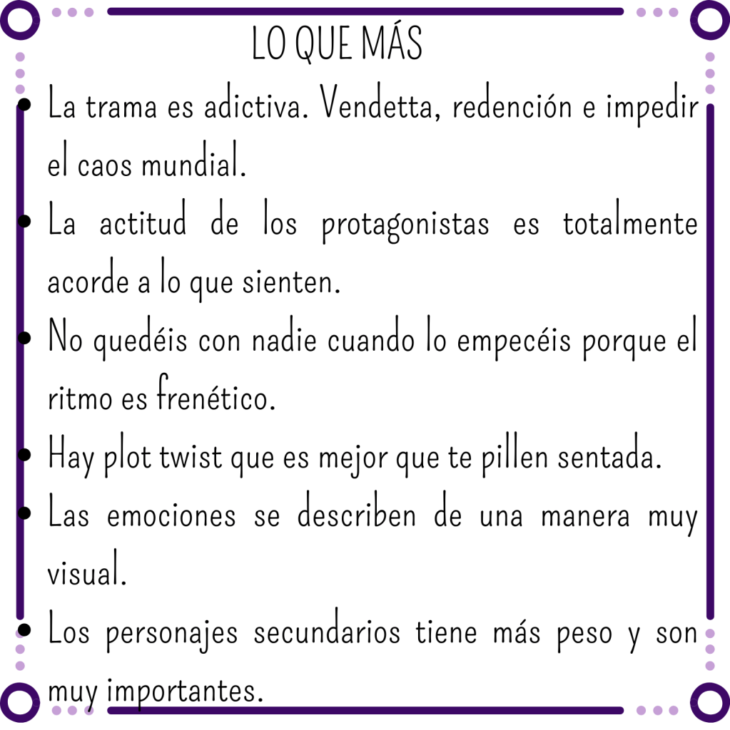 Así que la trama va de vendetta y redención, casi nada… Pero por si no fuera suficiente, también hay que sumarle que Kaden, el gran hijo de puta por excelencia, tiene un plan para abrir las puertas de los dominios y sembrar el caos por todo el universo, y obviamente, hay que detenerlo.