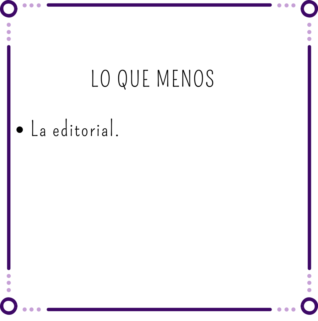 Estamos indignadas porque no entendemos los motivos de la Editorial de cortar el libro por la mitad, dejando un desenlace totalmente a medias.