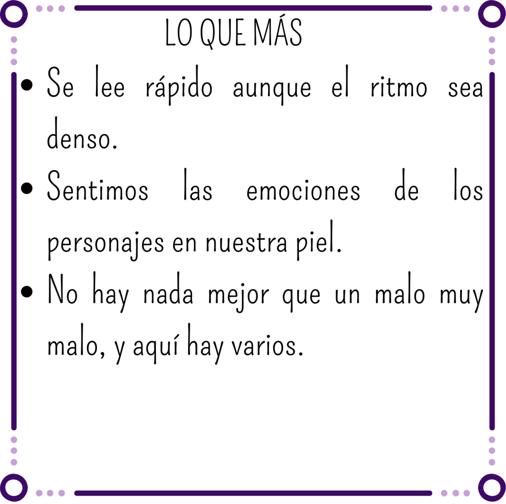 No hay demasiados puntos de giro porque todas las sorpresas se descubrieron en el libro anterior. En este, lo que vemos son los efectos y las consecuencias de todo lo que averiguamos. Y aunque hay alguna sorpresa que otra, por lo general, no hay grandes plot twist que impacten.