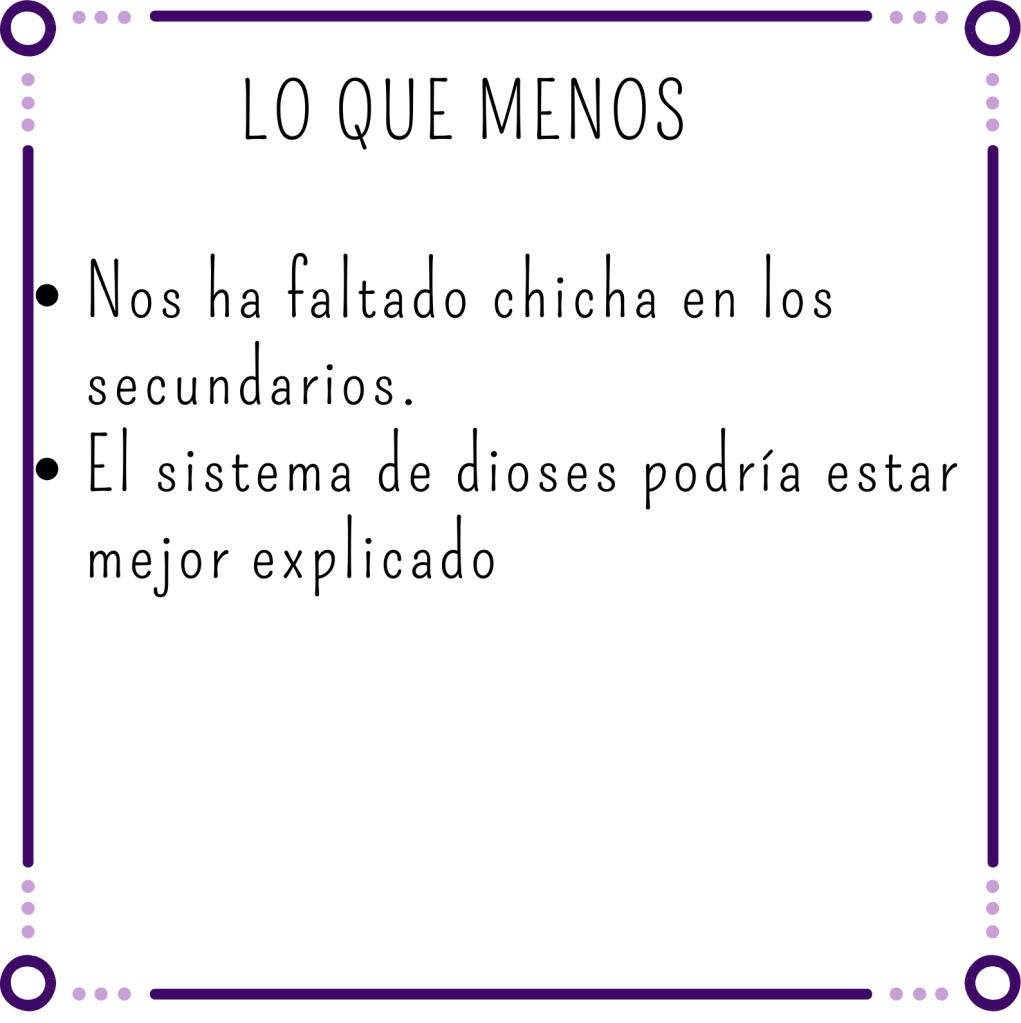 Hemos notado que en esta ocasión la autora es más light en cuanto a descripciones sangrientas y masacres. Así que si el primero os costó por ese motivo, en este podéis ir más tranquilos.