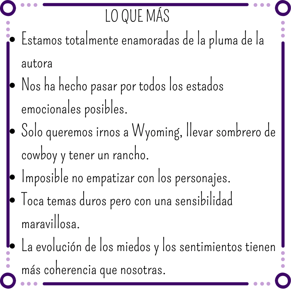 La ambientación nos ha encantado. Small town, rancho, cowboys… la verdad es que era nuestra primera vez en una historia con este entorno y tenemos que decir que ya estamos mirando sombreros de vaqueras.