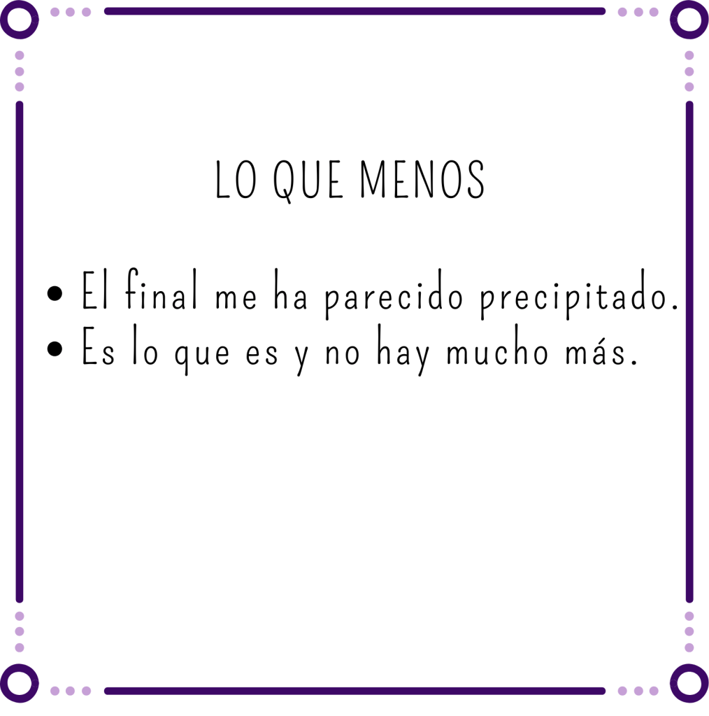 ¿Vais buscando una historia que os vuele la cabeza y os sorprenda en cada capítulo? pues lo siento, no es esta, pero es que tampoco necesita una infinidad de plot twists, aunque alguno hay, pero vamos, que no es algo que caracterice este tipo de libros.