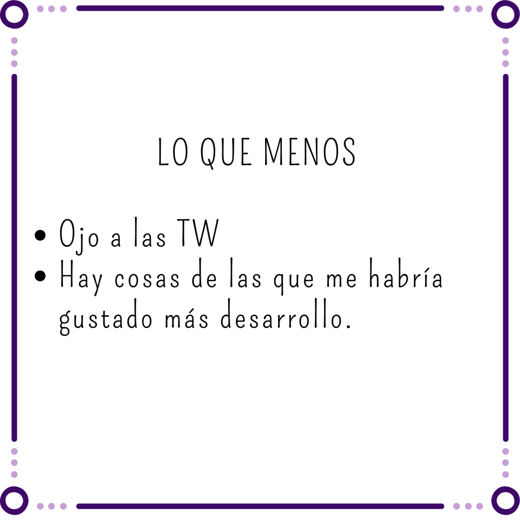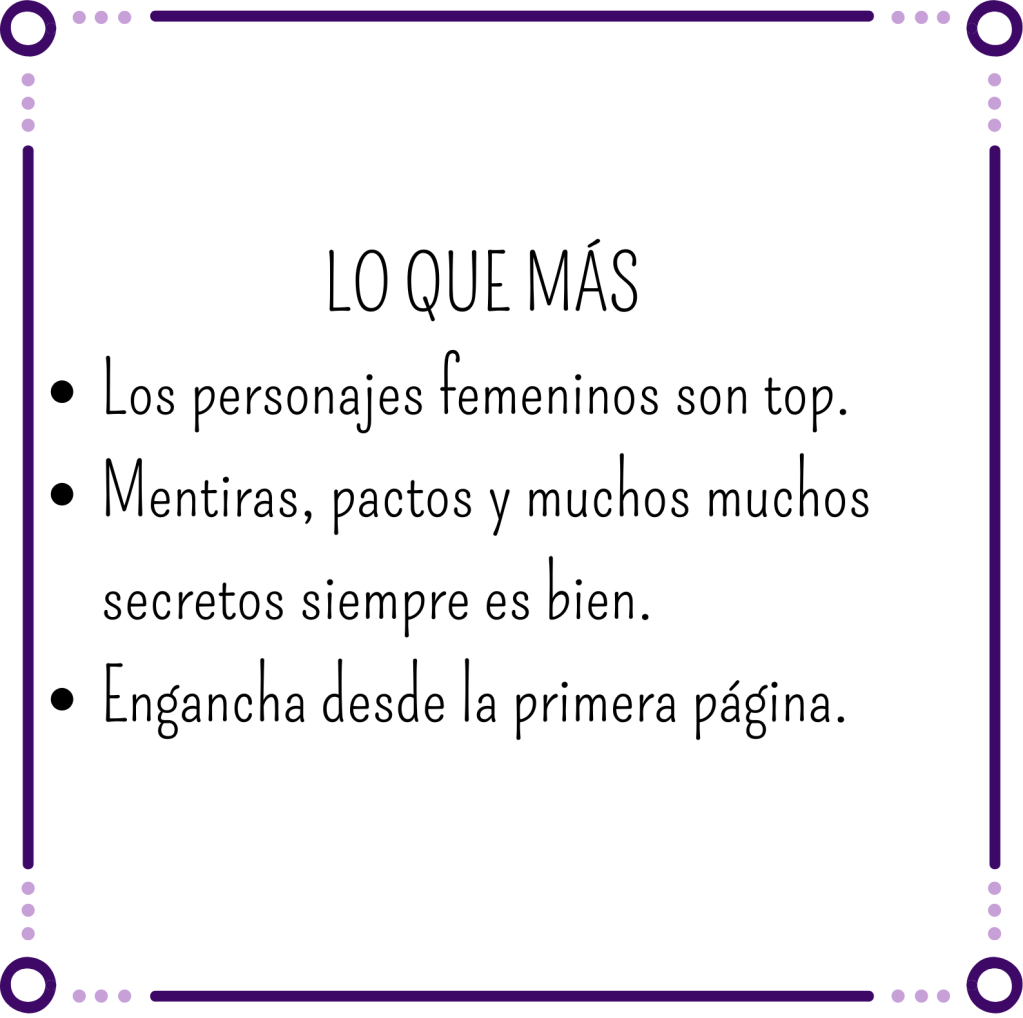 Y aunque sabía que había secretos, no esperaba algunos de ellos, así que los descubrimientos en forma de plot twist me han golpeado en la cara (y bien a gusto).