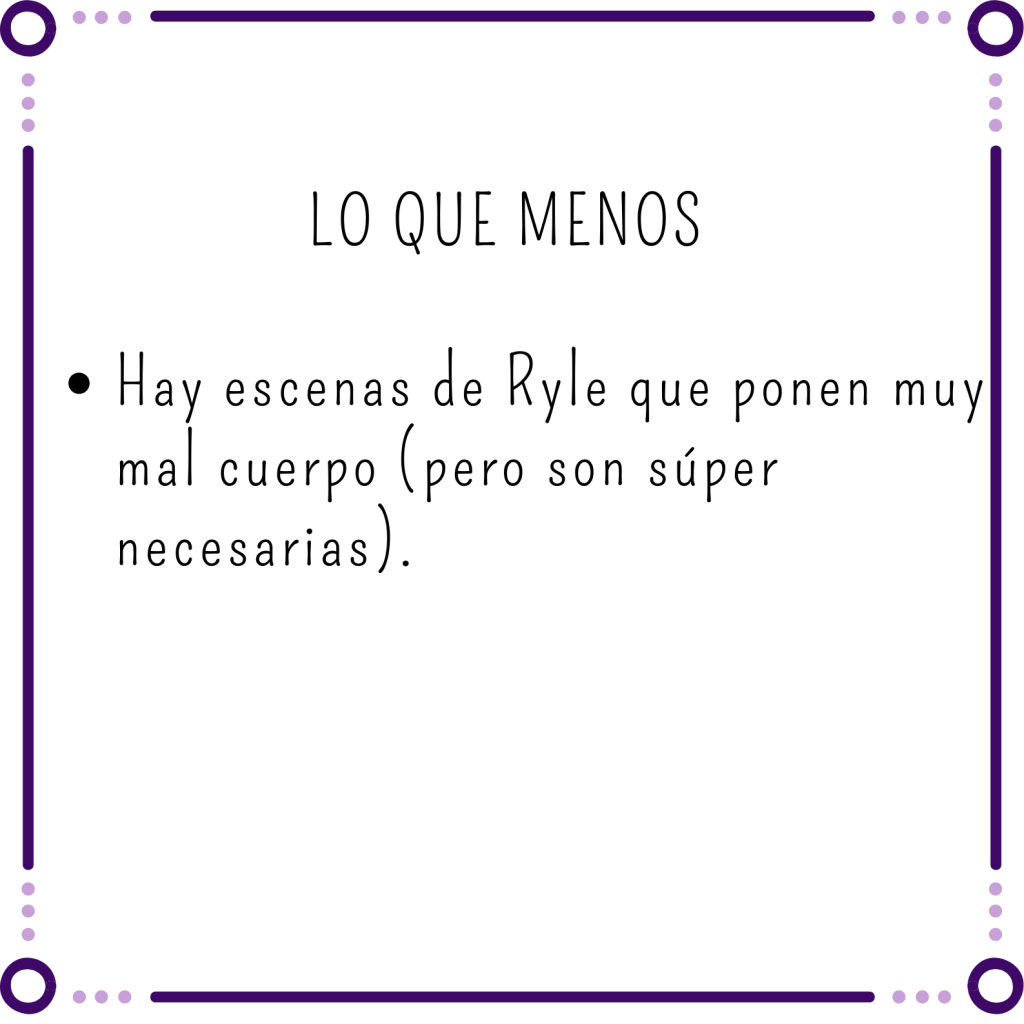 Me ha parecido muy interesante porque aunque Lily vivió eso mismo en casa con sus padres, y tiene un gran trauma por ello, no se da cuenta de que a ella le pasa lo mismo.