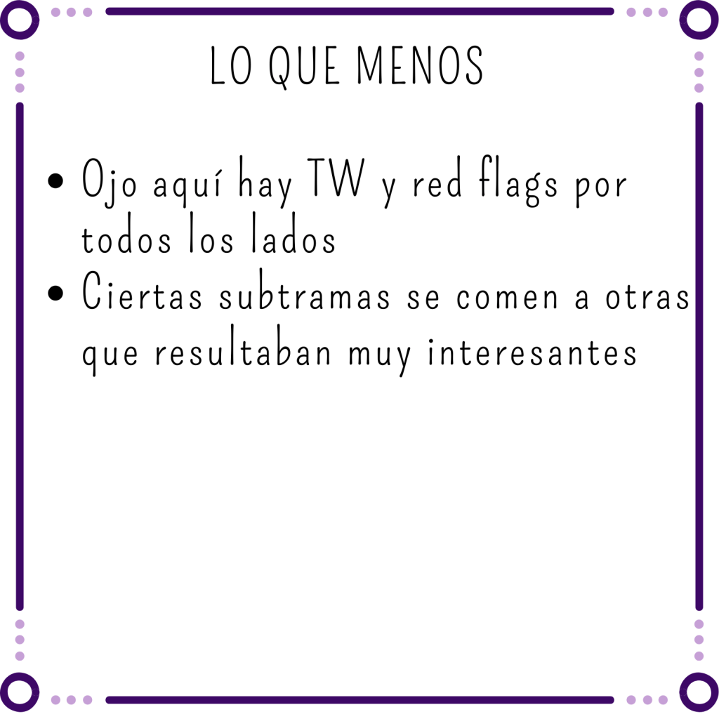 Es un friends to lovers de manual, así que ya sabéis por donde van a ir los tiros. Hay algún que otro plot twist que te hace tener la boca abierta un rato, pero aun así no sorprende mucho.