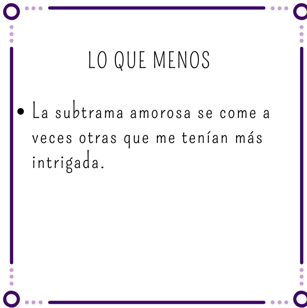A eso hay que sumarles unas cuantas subtramas amorosas que enganchan igual que el argumento principal y que ablandan el corazón hasta convertirlo en plastilina.