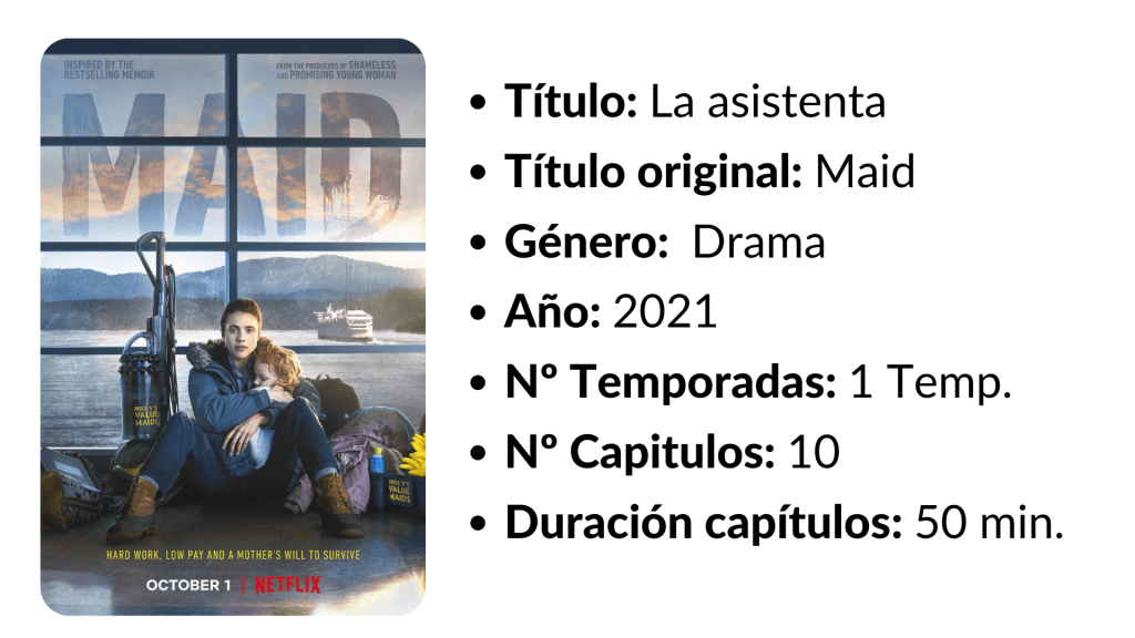 Alex (Margaret Qualley que ahora está muy de moda) tiene que huir de su hogar con su hija pequeña y 18 dólares en el bolsillo completamente sola, ya que como se explica muy bien en esta historia, los amigos y la familia no siempre significa tener apoyo. Decide pedir ayuda al estado donde una trabajadora social le ayudará a iniciar (o a intentar) una nueva vida.