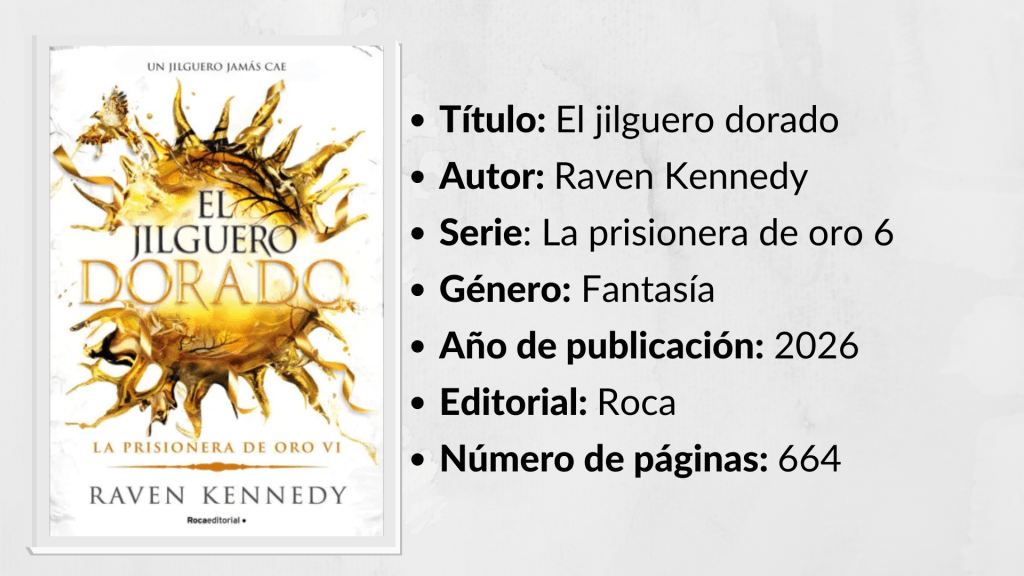 Uno nunca puede perderse de verdad cuando dos almas ya están unidas. Slade y yo estamos conectados por algo más que la magia del destino, y siempre nos encontraremos. En cualquier vida. El rey feérico está tratando de destruirme: mi legado, mi memoria… Pero de lo que no se ha dado cuenta es de esto: el oro se dobla, pero la piedra se rompe. Y un jilguero jamás cae. Vuela.