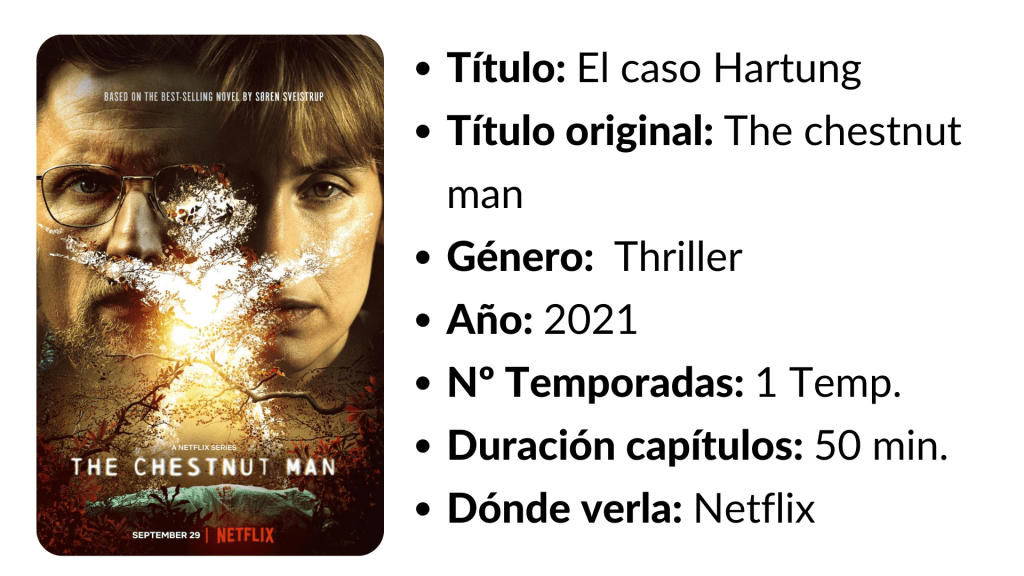 En un parque infantil de una tranquila zona residencial de Copenhague, la policía encuentra a una joven brutalmente asesinada a la que le han seccionado una mano. Sobre la chica cuelga un muñequito hecho con castañas. El caso se asigna a la ambiciosa y joven detective Naia Thulin y a su nuevo compañero, Mark Hess.