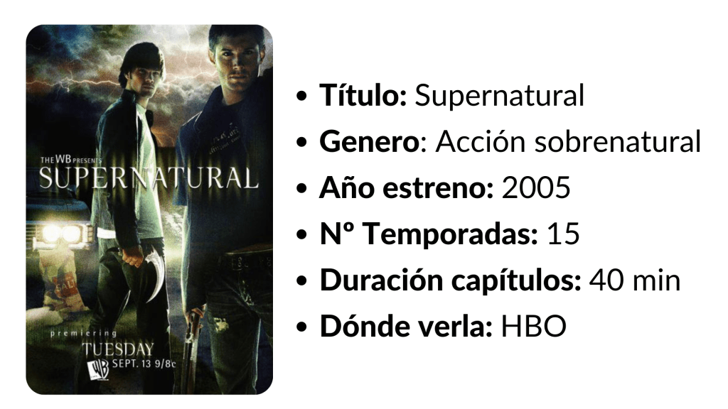 Esta serie va de dos hermanos que tienen un “negocio familiar” algo peculiar: salvar personas y cazar monstruos.