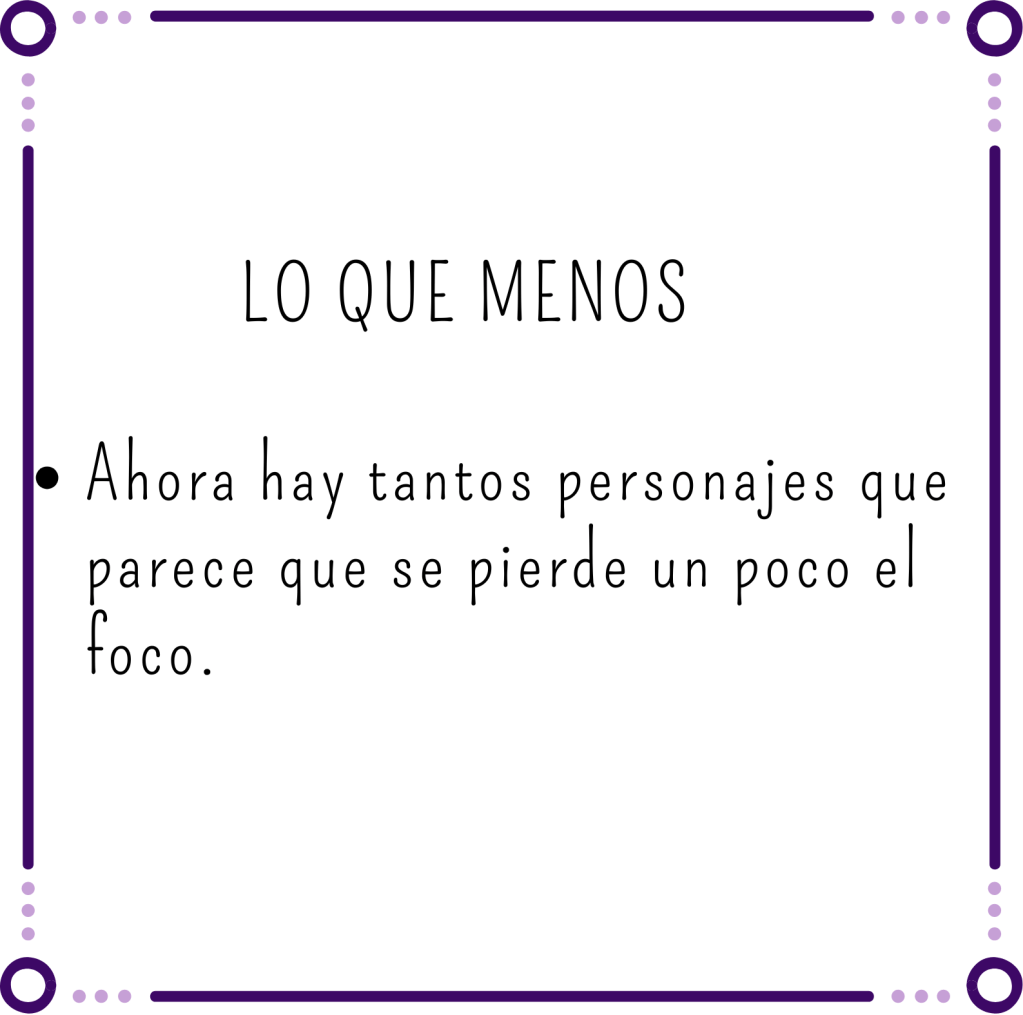 Creemos que el problema es que al haber tantos puntos de vista, nos hemos sentido más dispersas, ya que se pierde un poco el foco principal porque cada personaje tiene su propia línea de investigación, entonces es difícil conectar con todo al principio.