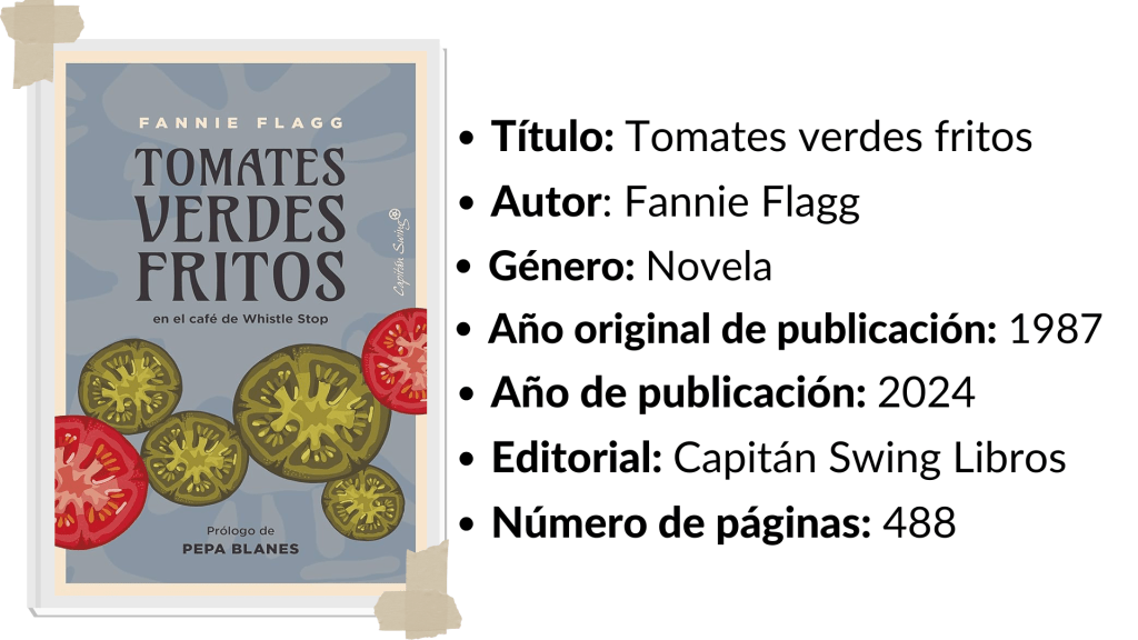 Evelyn Couch vive una existencia gris. Es una mujer de mediana edad, acomplejada y totalmente frustrada con todo lo que la rodea. Sin embargo, la manera de ver el mundo que tiene una persona puede cambiar cuando menos se lo espera. En una visita al asilo donde reside la madre de su marido, Evelyn conoce a la anciana Ninny Threadgoode, que le empieza a explicar cosas de un pequeño pueblo llamado Whistle Stop, cuya vida giró un tiempo en torno a un café. De pronto, a Evelyn se le abre una luminosa ventana al pasado por la que entra un aire de una frescura desconocida para ella. Remontándose a finales de la década de 1920, Ninny explica historias cuyas protagonistas son Idgie y Ruth, dos espíritus sensibles, alegres y llenos de una admirable energía vital, que saben sobreponerse a las dificultades y saborear el gusto por la vida. Tomates verdes fritos aborda temas tan difíciles como la discriminación de la mujer, el racismo, el lesbianismo, la miseria o el alcoholismo y, a pesar de eso, es una de esas novelas optimistas en las que, como por arte de magia, todo encaja a la perfección y acaban cautivando al lector.